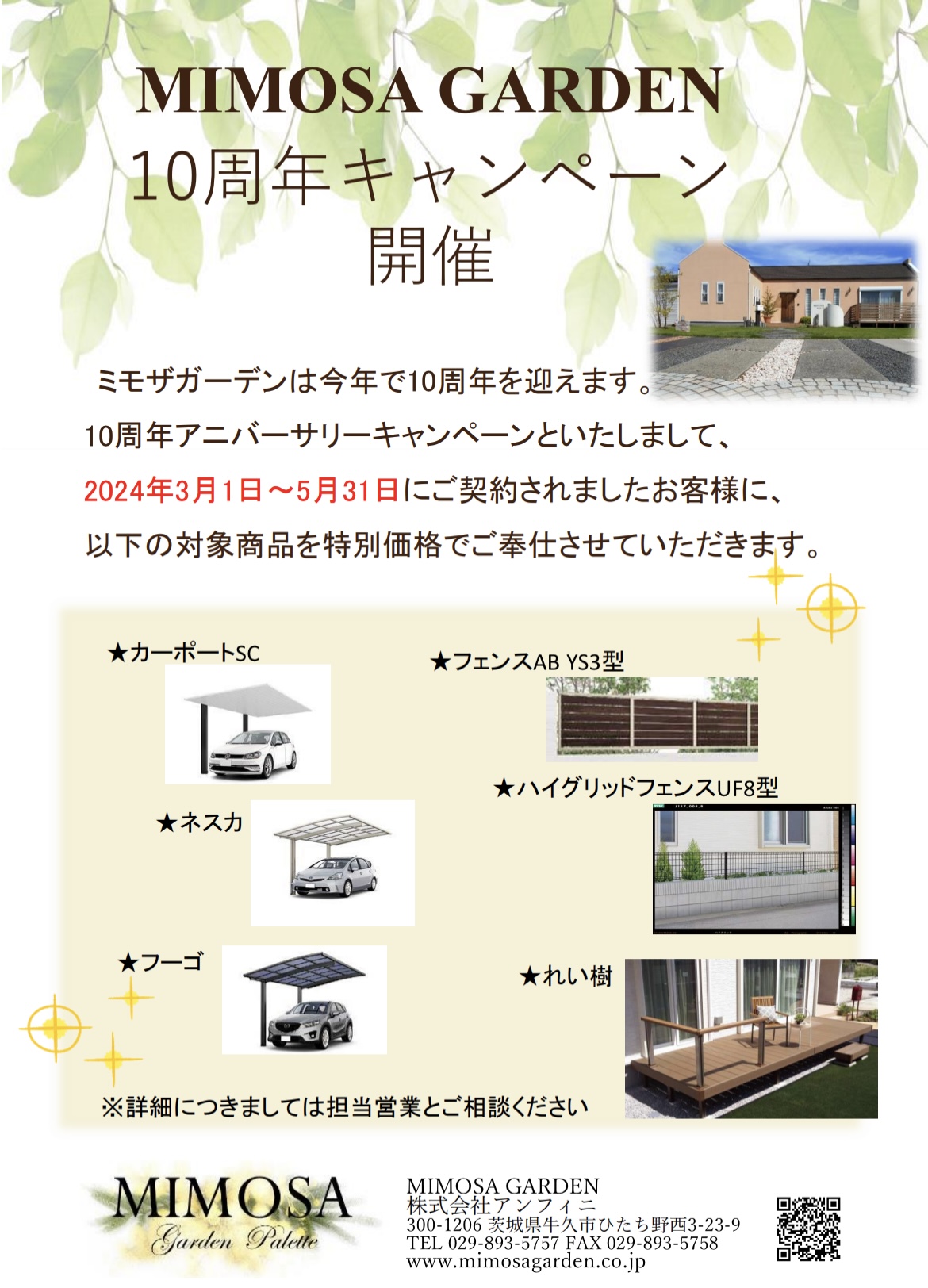 2024年3月29日 / 最終更新日時 : 2024年3月29日 mimosa BLOG 10周年キャンペーン開催中! ミモザガーデンです❕ 10周年キャンペーン開催中です✨ お問い合わせお待ちしております!!!!